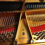 The piano’s hammers are connected to the keys through a series of delicate levers known as the piano’s action. The action’s purpose is to increase the hammer’s speed as it strikes the strings and to control the hammer’s rebound after the strike. The hammers are usually covered with a layer of felt or similar material to improve the quality of the piano’s sound. The sound quality of the piano is also influenced by factors such as the quality of the soundboard.